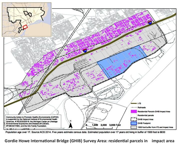 The Baseline Health Impact Assessment (HIA)—a collaboration between SW Detroit CBC, the Detroit Hispanic Development Corporation, the University of Michigan, and the Detroit Health Department—documents current air quality and health conditions in the bridge area. Data collected between 2016–2018 provides a foundation for tracking future changes and identifying strategies to protect residents’ health as bridge operations begin.
