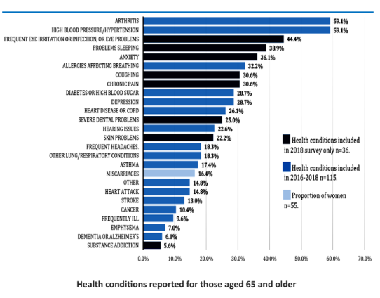 Health conditions reported for those aged 65 and older