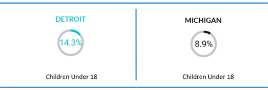 The Michigan Behavioral Risk Factor Survey indicates that 14.3% of children under the age of 18 in Detroit have been told by a health care provider that they currently have asthma, compared to 8.9% of children under 18 in Michigan.